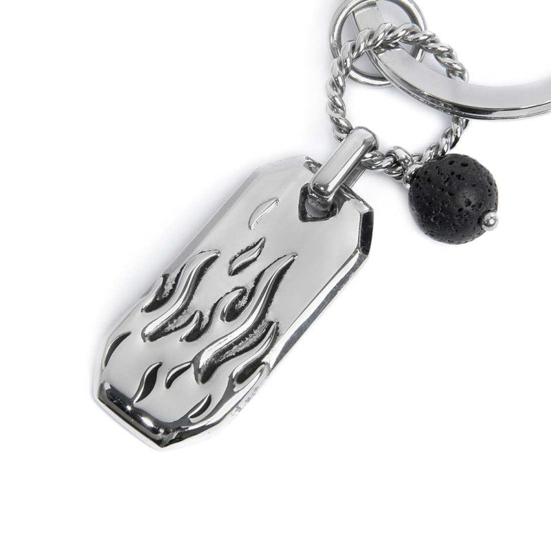 Marlù | Portachiavi con fiamme e pendente con pietra lavica
