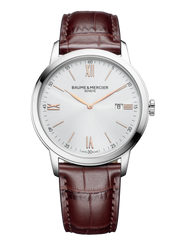 Superbo orologio con data 42 mm da uomo, il Classima 10415 si distingue per la lussuosità del quadrante argenté in contrasto con la finitura satinata soleil e le eleganti lancette in oro. Indici delle ore in numeri romani. Il cinturino in pelle rosso bruno, la cassa in acciaio e la finestrella del data a ore 3 ne definiscono l’eleganza classica per chi ama lo stile tradizionale. Movimento al quarzo Swiss Made.