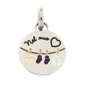 Charm in acciaio tondo con logo prima coccola Materiali : acciaio, smalto