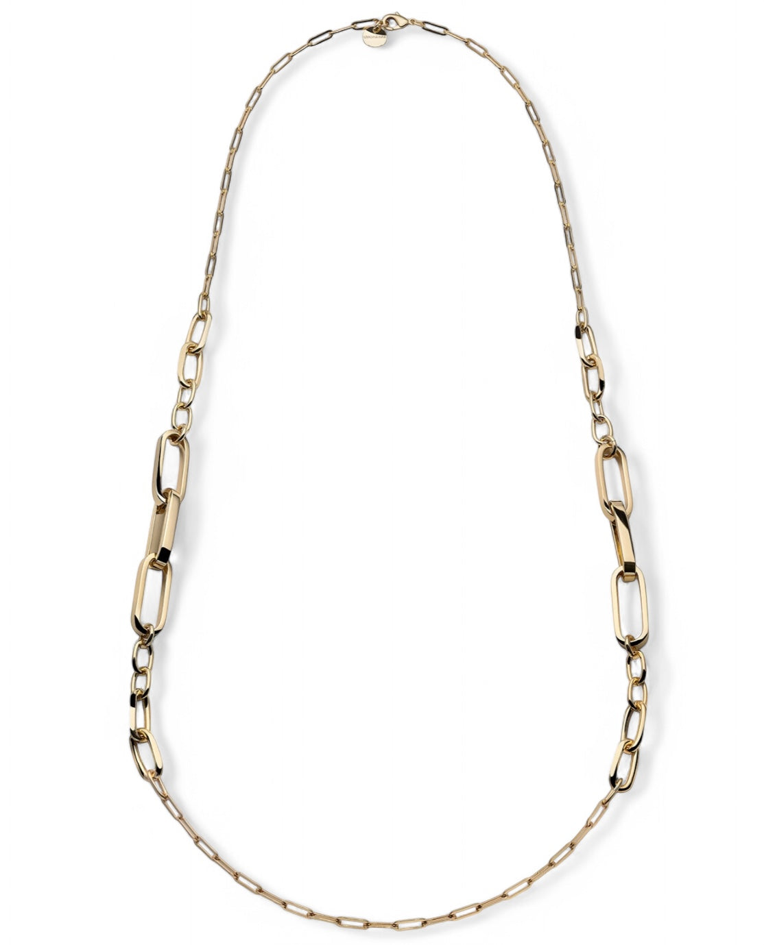 La collana Unoaerre in bronzo dorato stile moderno è un gioiello dal design contemporaneo, pensato per esaltare la femminilità con eleganza. Realizzata in bronzo anallergico con una placcatura in oro giallo 24 carati, questa collana presenta una finitura lucida che ne esalta la brillantezza.