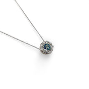 Collana in oro bianco 18kt con diamanti ct. 0,10i e acquamarina ct. 0,16