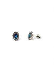 Orecchini in oro bianco 18kt con diamanti ct. 0,28 e zaffiri ct. 0,68.