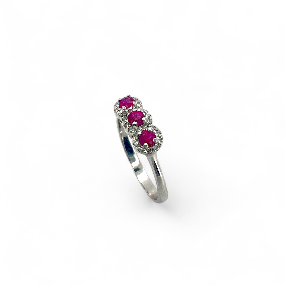 Anello in oro bianco 18kt con diamanti: ct. 0,26 e rubini ct. 0,21.