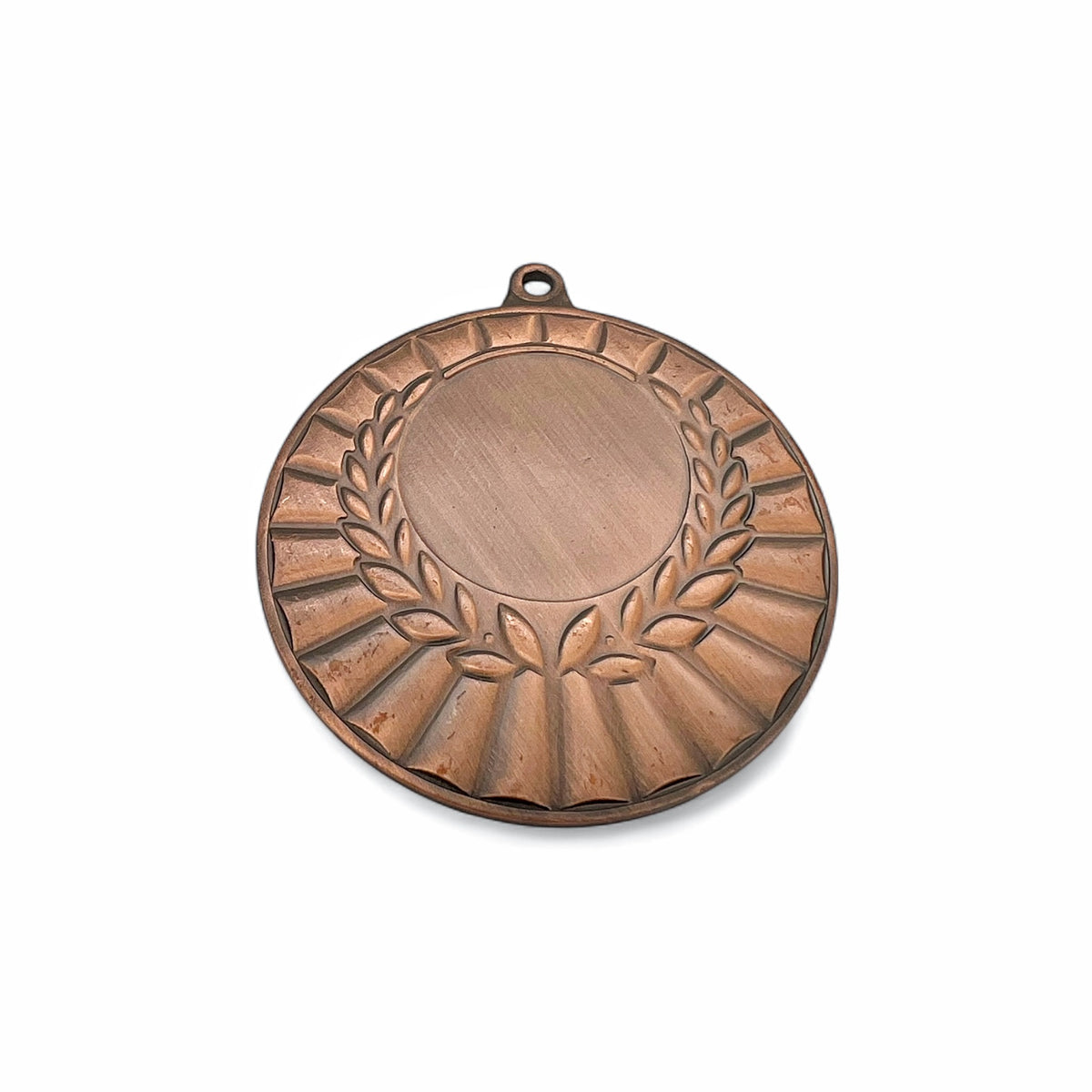 Medaglia disponibile nei colori oro, argento e bronzo. Presenta un elegante decoro a raggiera con corona d’alloro centrale, simbolo di vittoria e prestigio.