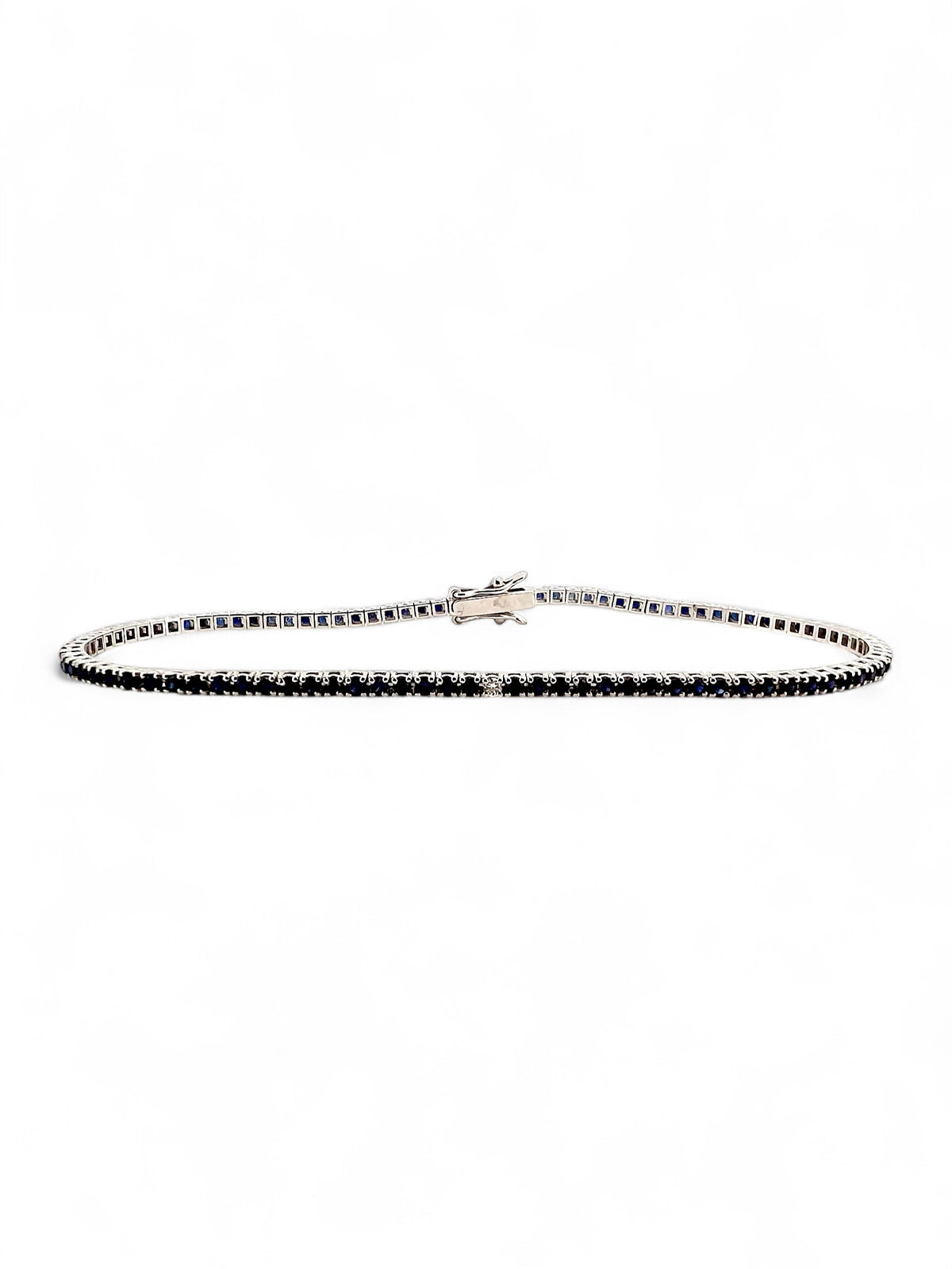Tennis in oro bianco 18 kt con zaffiri blu e diamante centrale.