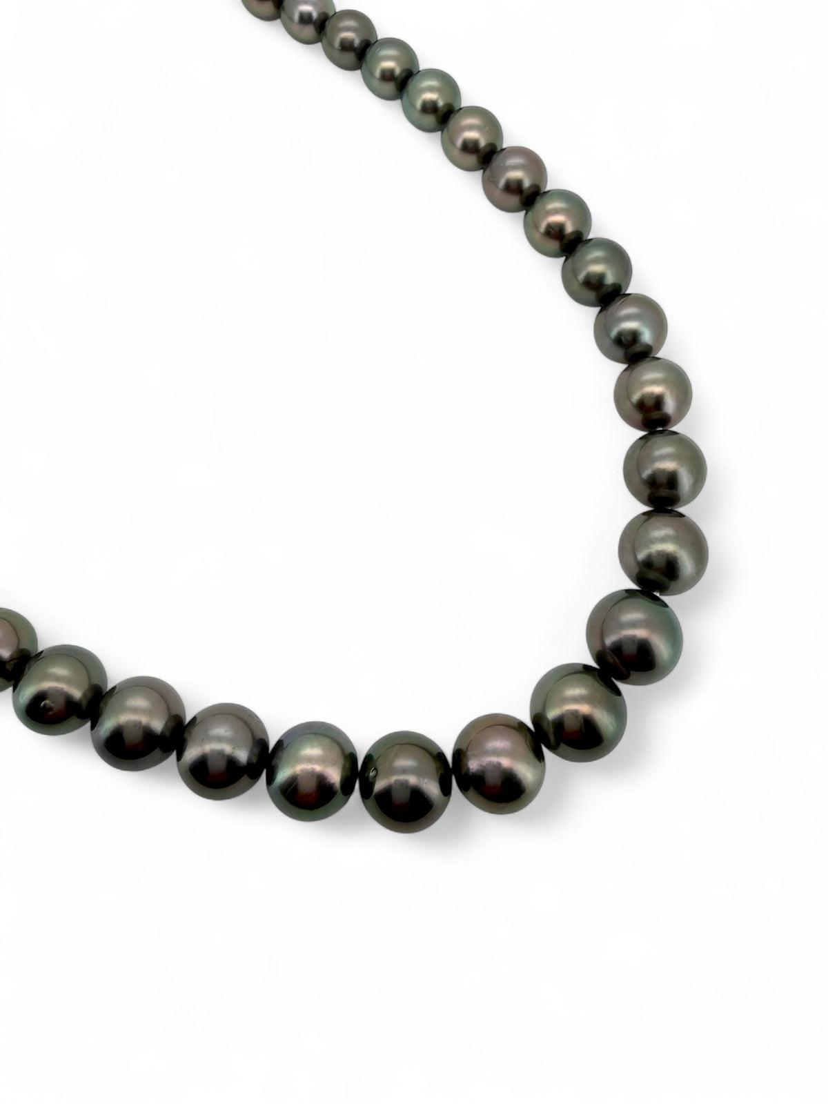 Filo di perle di provenienza Tahiti. Dimensione perle 10,0 - 12,2 mm
