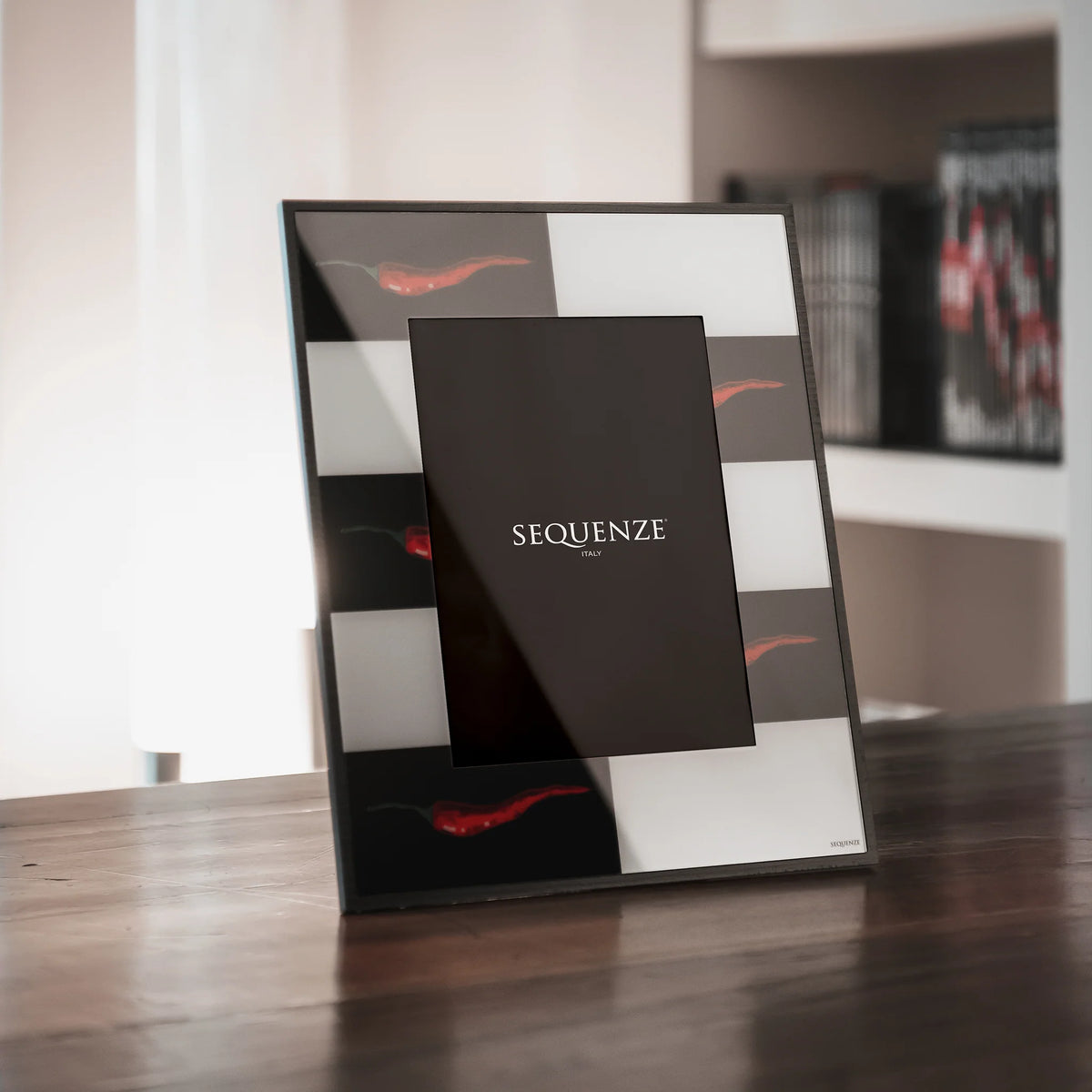 Il portafoto della linea "The Spicy Riot" di Sequenze rivisita, in chiave moderna, l'icona portafortuna per eccellenza.