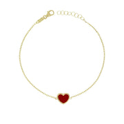 Bracciale in oro giallo 9 kt con cuore rosso.