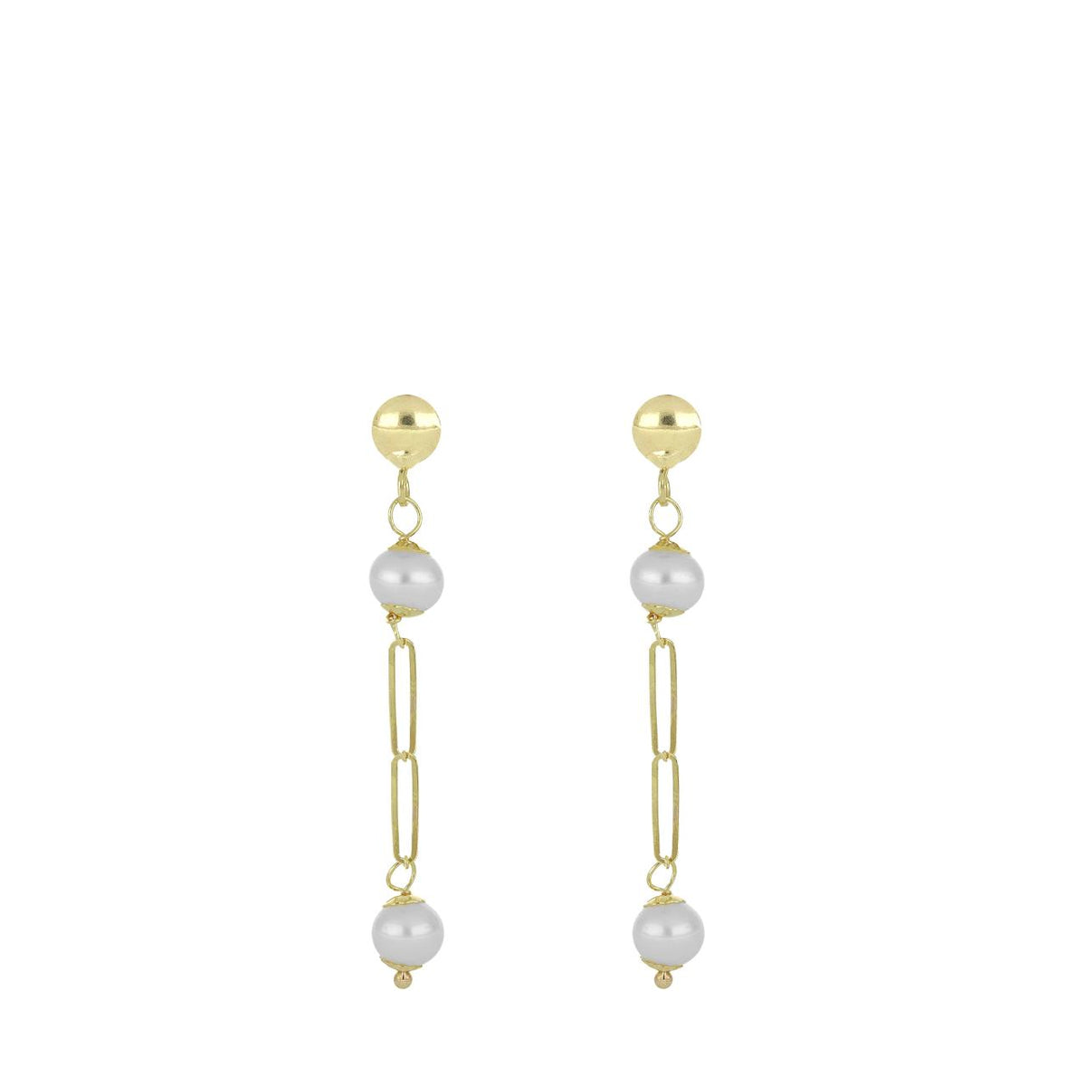 Orecchini design in oro giallo 9 kt con maglia larga e perle.