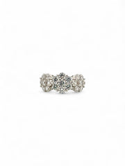 Anello in argento con tre fiori con pietre bianche.