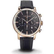 Orologio cronografo da uomo di Locman della collezione 1960. Orologio con cassa in acciaio con trattamento pvd della dimensione di 42 mm e indici applicati. Cinturino in pelle nero della larghezza di 20mm. Orologio con resistenza all'acqua di 5 atm, movimento al quarzo e datario. La referenza è 0254r01r-rrbkrgpkImpossibile caricare la disponibilità del ritiro