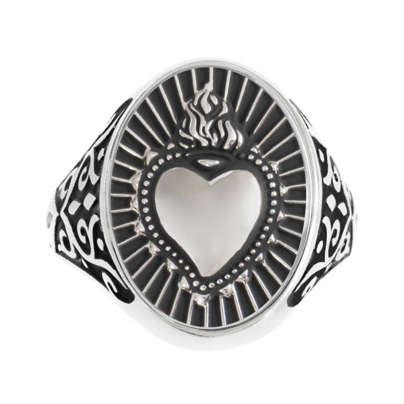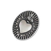 Piastrina ovale per anello in acciaio con black oil opaco, al centro il sacro cuore in rilievo. Sul retro logo Marlù inciso. Materiali: acciaio, black oil