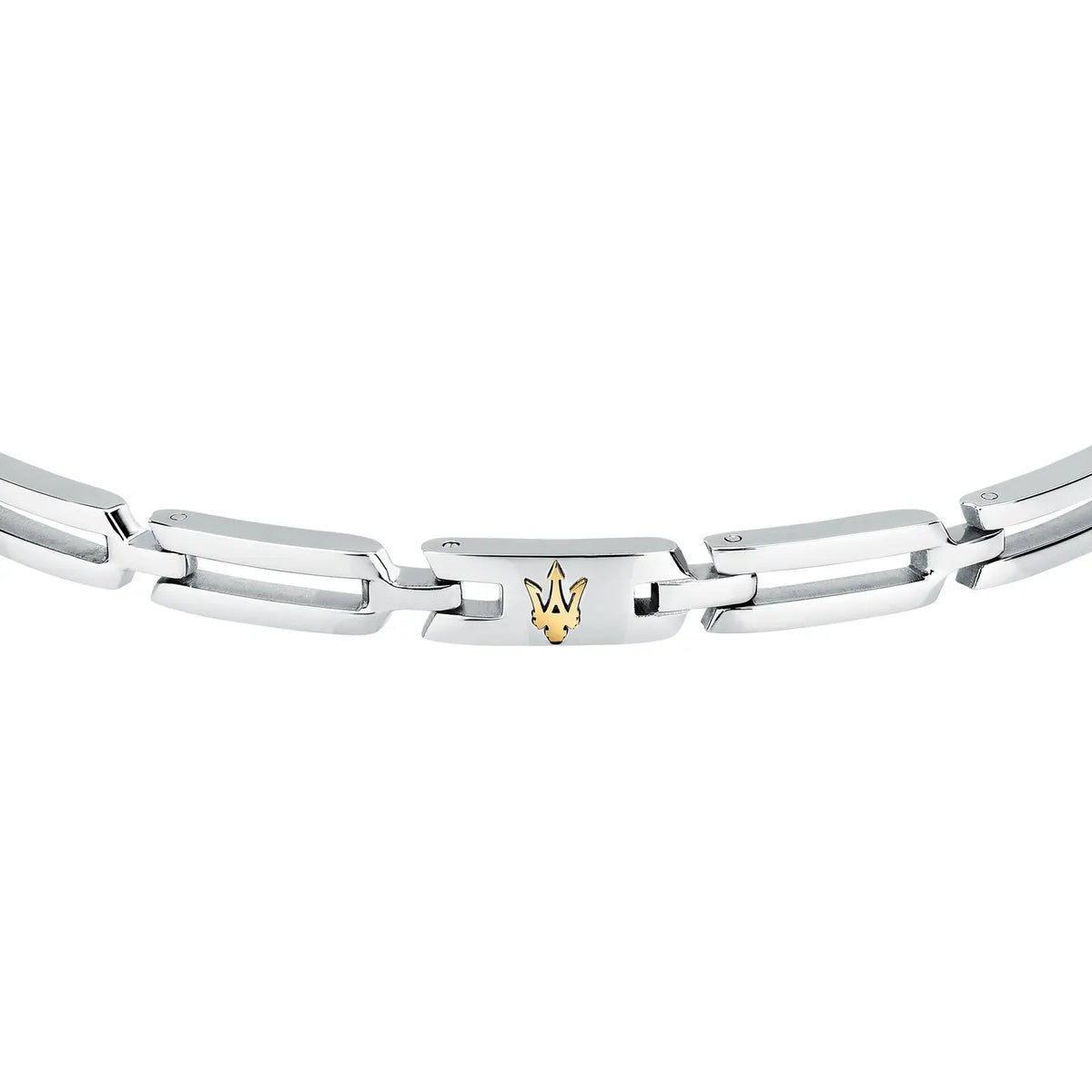 BRACCIALE MASERATI ICONIC - JM424AVD74 - Genere: Uomo, Misura: 18|3.5, Colore: Silver, Dorato. Materiale: Acciaio, Peso: 18,510 gr, Certificato di autenticità: Sì, Confezione: Originale Maserati