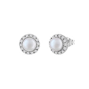Orecchini in oro bianco 18kt perle mm.6/6,5 con diamanti ct. 0,14