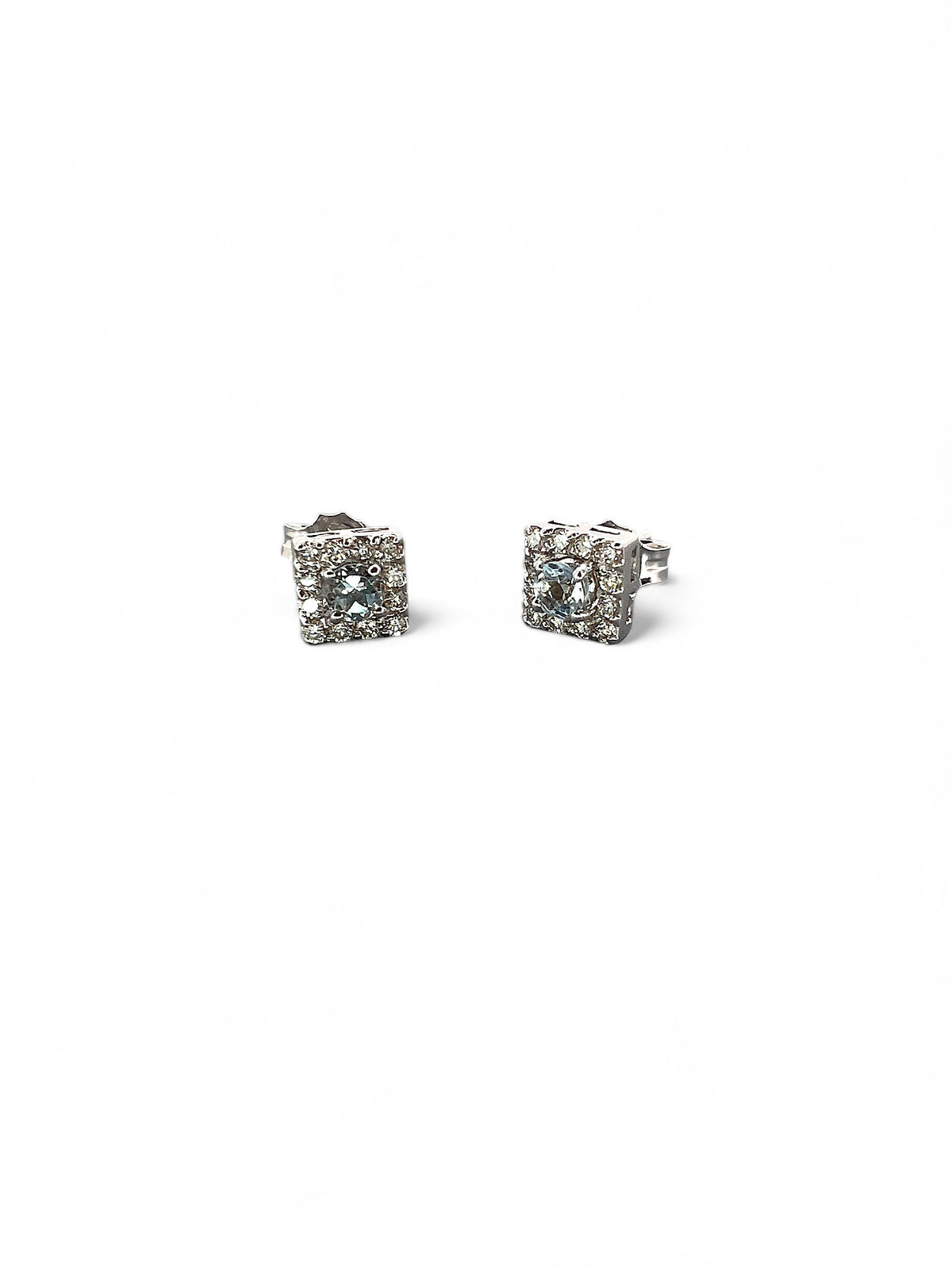 Orecchini in oro bianco 18kt con diamanti ct. 0,28 e acquamarine ct. 0,32