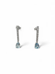 Orecchini in oro bianco 18kt, diamanti ct.0,16 e acquamarine ct. 0,90 totale