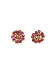 Orecchini fiore in oro rosa 18 carati con diamanti naturali taglio brillante e zaffiri rosa naturali sfumati taglio brillante.
