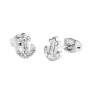 Orecchini in acciaio ancora con cristalli. Collezione: Time To Materiali: acciaio, cristalli
