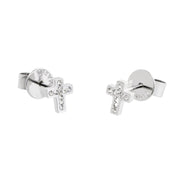 Orecchini in acciaio croce con cristalli. Collezione: Time To Materiali: acciaio, cristalli