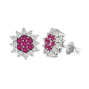Orecchini in oro bianco 18kt rubini ct. 1,2 con diamanti ct. 0,07