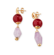 Orecchini in ottone, finitura oro 18kt con ametista, quarzo pesca e agata ruby.