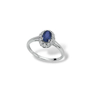 Zaffiro naturale di forma ovale. Diamanti naturali taglio brillante.
