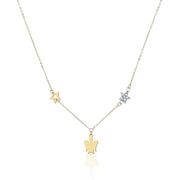 Collana Young con pendente angelo in oro giallo, stella in oro bianco e zirconi bianchi.