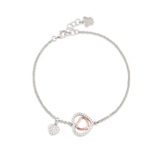 Bracciale con cuore zirconato e argento rosato e cuore charm.