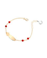 Bracciale bimba o bimbo con targhetta angelo in oro giallo e coralli rossi.