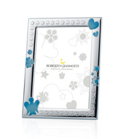 Raffinata ed elegante la cornice in argento è un prezioso dono da regalare alle neo mamme per l'arrivo di un bimbo. Smalto azzurro e forme deliziose rendono la cornice molto particolare, perfetta per chi è alla ricerca di un dono legato ai più preziosi sentimenti. I simboli hanno tanti significati, un angelo protettore di chi è raffigurato in foto. Il cuore che dimostra amore e grazia ma anche la stella e il sole, preziosi dal potere sentimentale unico. Non poteva mancare il quadrifoglio, simbolo di buon auspicio per un dettaglio straordinario da sfoggiare in qualsiasi ambiente di casa.