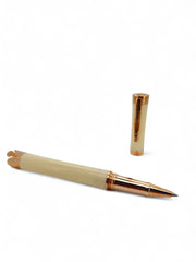 Dalla collaborazione con lo storico marchio italiano Montegrappa noto per la produzione di penne pregiate nasce questo splendido accessorio. La penna roller Roberto Giannotti di colore bianca è in edizione limitata ed è realizzata in acrilico e ottone placcato. Sul tappo sono incisi entrambi i marchi e sulla parte posteriore del tappo e della penna non poteva mancare il simbolo iconico che caratterizza il brand, l'Angelo. La penna rappresenta un'ottima idea regalo per giovani laureati, affermati professionisti e scrittori. Non esiste scrivania che si rispetti che non abbia una penna elegante in bella mostra. Questa ha un design molto semplice, ma allo stesso tempo raffinato: un regalo adatto a tutti.