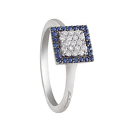 Anello in oro bianco, diamanti ct. 0,12 H e zaffiri ct. 0,14