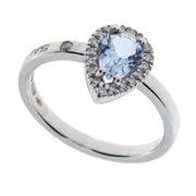Anello in oro bianco, diamanti ct. 0,13 GH ed acquamarina ct. 0,52