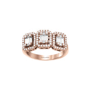 Anello trilogy Salvini in oro rosa 18 kt della collezione Magia, con diamanti taglio baguette 0,30ct e diamanti taglio brillante 0,35 ct per un totale di 0,65 carati .