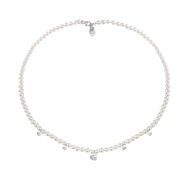 Collana in oro bianco 9 KT, perle mm 4/4,5 e diamante ct. 0,01 GH