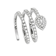 Anello in oro bianco con diamanti taglio brillante e taglio goccia.