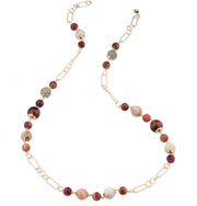 Collana in ottone, finitura oro 18kt con pietra di luna, occhio di tigre rosa e occhio di tigre rosso.
