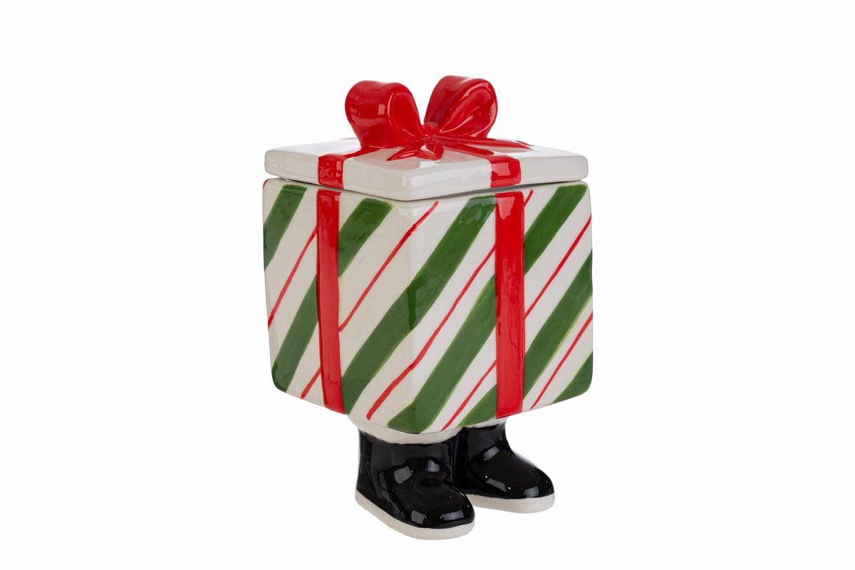 Barattolo natalizio in porcellana, ideale come bomboniera per il periodo natalizio. Perfetto per contenere dolci o piccoli regali con eleganza e stile moderno.