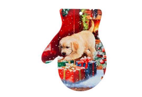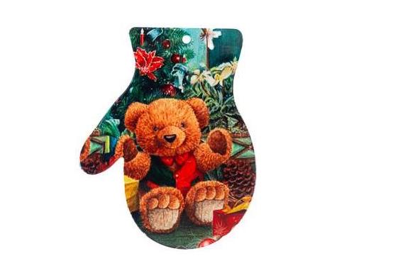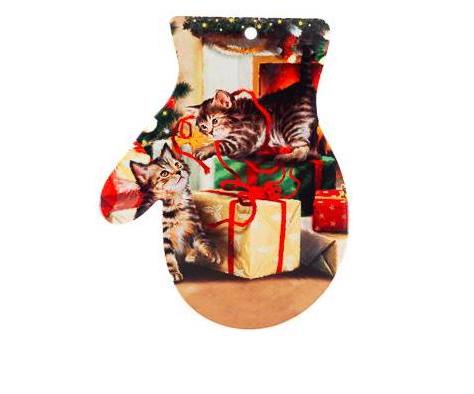 Guanto poggia pentola in ceramica decorato a tema natalizio, ideale come bomboniera per il periodo delle feste. Misura 20×25 cm, disponibile in quattro varianti.