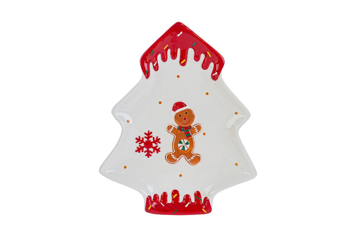 Vassoio in ceramica a forma di biscotto zenzero, ideale come bomboniera natalizia per eventi aziendali o regali di fine anno dall’elegante tocco festivo.