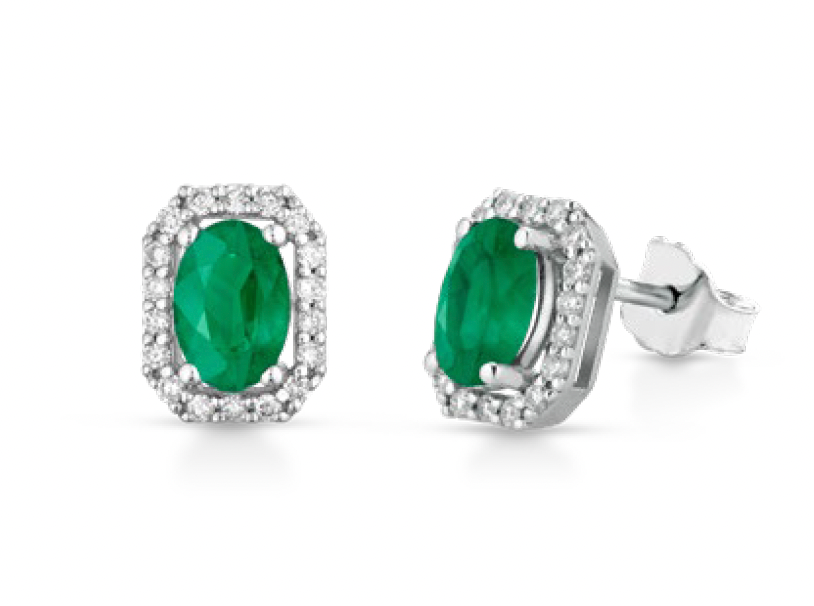 Orecchini Donna Lucciole - Realizzati in oro bianco 18kt e impreziositi da smeraldi ct.0,73 e diamanti naturali 0,14
