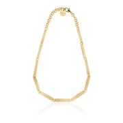 Esalta il tuo stile con questa elegante collana con bagno in oro. Le piastrine piatte collegate tra loro da piccole...