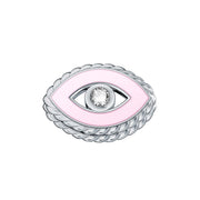 Elemento Colpo d’occhio in oro bianco 18 kt, smalto rosa e diamante 0,02 ct.