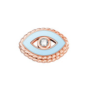 Elemento Colpo d’occhio in oro rosa 18 kt, smalto azzurro e diamante 0,02 ct.