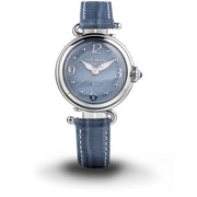 Orologio Solo Tempo Da Donna Di Locman Della Collezione Amo. Orologio Solo Tempo Con Cassa Rotonda Realizzato In Acciaio E Titanio Con Diametro 32Mm. Il Cinturino È In Pelle Color Blu Cielo Con Chiusura Ad Ardiglione. Cinturino: 14Mm. La Resistenza All'Acqua È 5Atm. La Referenza È 0701A15A-00Mankps.