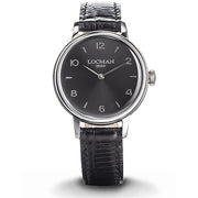 Orologio Solo Tempo Da Donna Di Locman Della Collezione 1960. Orologio Con Cassa In Acciaio Del Diametro Di 32 Mm, Quadrante Con Misto Di Numeri Arabi E Indici (Applicati). Il cinturino è in pelle nera, con ansa di 14 mm. Questo modello ha resistenza all'acqua di 5 atmosfere - 50 metri e movimento al quarzo. La Riferimento È 0253A01A-00Bknk2Pk