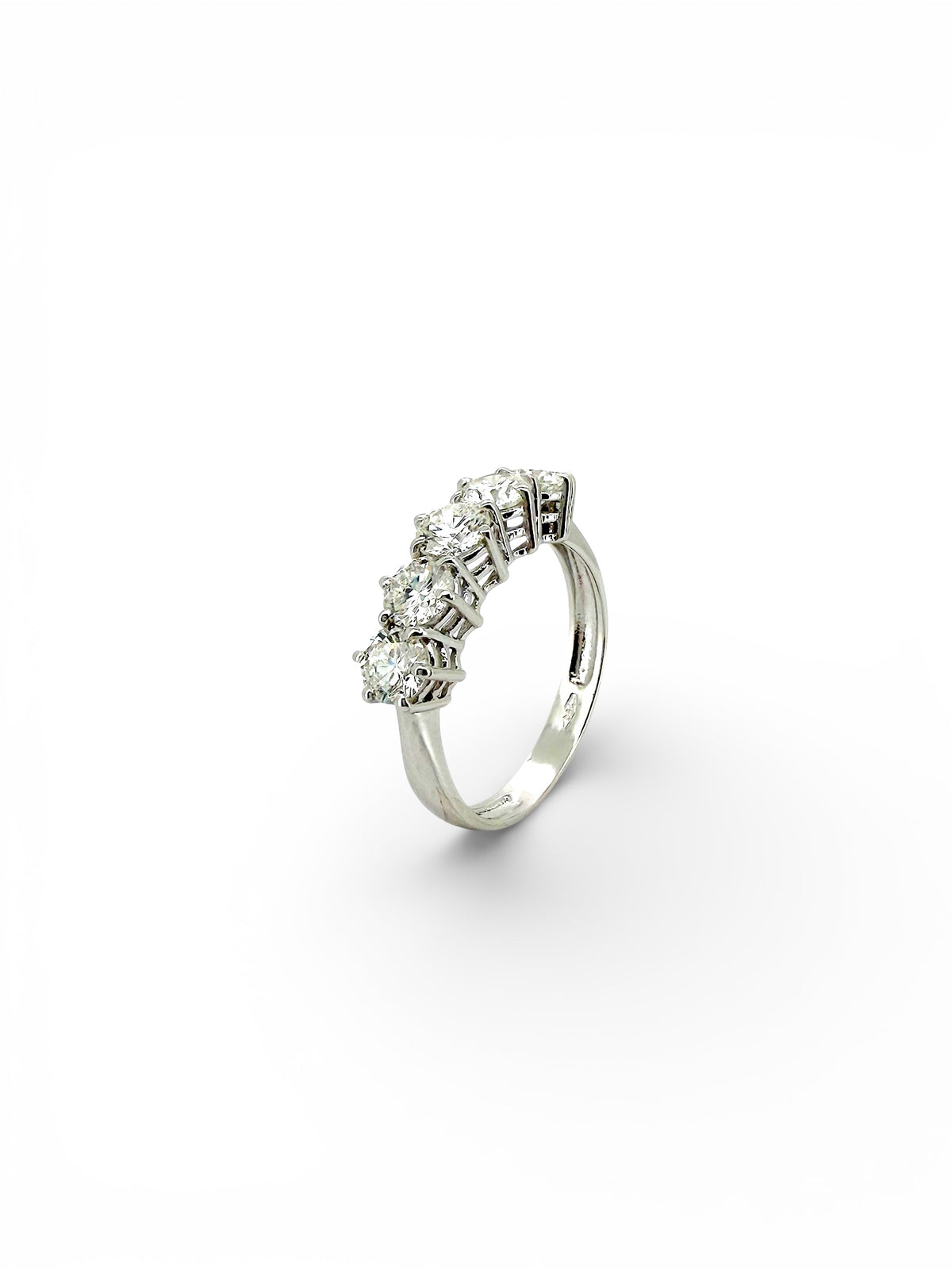 Veretta con 5 diamanti taglio brillante certificati GIA in oro bianco a sei griffe.