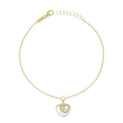 Raffinato bracciale realizzato in oro 9 carati , perfetto per chi ama uno stile elegante ma discreto. Il design versatile lo rende adatto sia per l’uso quotidiano che per le occasioni speciali. Decorato con cuori, un cuore in madreperla.